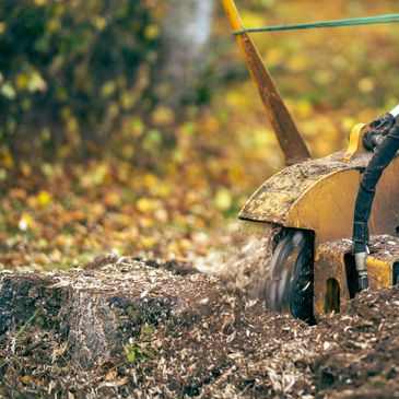 Stump grinding uses a circular cutting wheel machine with teeth that grind the stump into wood chips, the remains are often used as mulch. The process of grinding a stump 6-8" below grade helps ensure it won't sprout again and allows for new landscaping options on your property. Unlike stump removal by excavation, stump grinding is more cost effective and poses less risk to disturbing buried hydro and gas utilities.